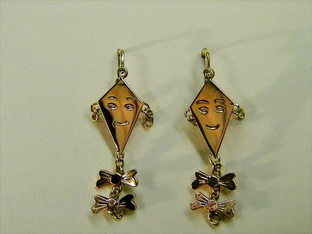 Dětské visací náušnice - žluté zlato. Vhodné od 4 let do školního věku. Tento model vyrábíme též  v bílém a červeném  zlatě.