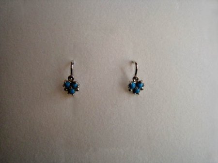 Náušnice jsou z bílého zlata. Povrchová úprava rhodiování. Kameny - 6x tyrkys. Vyrábíme je též ve žlutém provedení.