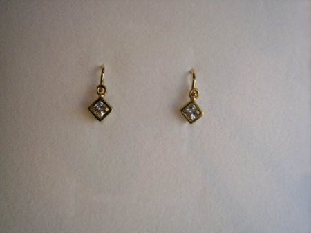 Jemné dětské náušničky - žluté zlato. Kameny zirkony. Tento model vyrábíme i v bílém provedení. Do kompletu vyrábíme přívěsky i prstýnky.