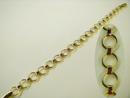 kroužkový náramek se spojkami z červeného zlata model vyrábíme v různých váhových provedeních používají se na přívěsky - podle jejich počtu se volí síla náramku - zde zobrazený typ je masivní a snese vysoké zatížení