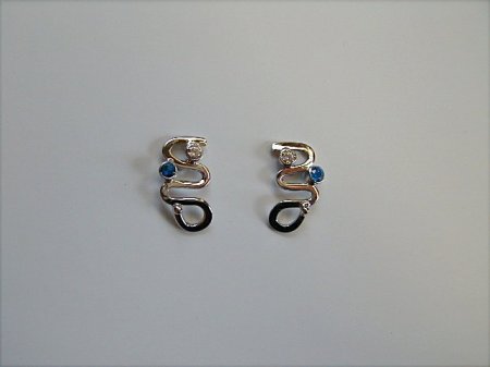 náušnice - bílé zlato, zapínání - puzeta, kameny 2x zirkon, 2x safír, povrchová úprava rhodiování náušnice zhotovujeme v několika provedeních s jiným druhem kamenů i zapínání