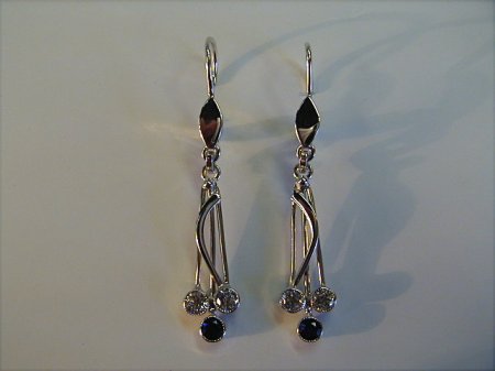 visací náušnice - bílé zlato zapínání patent, kameny 4x zirkon, 2x safír, úprava povrchu - rhodiování dekorativní, jemné náušnice - vyrábíme je i ve žlutém provedení