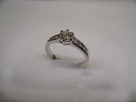 Briliantový prsten, bílé zlato, centrální šestihran 5mm, 6x 2mm, celk.0,65Ct SI1