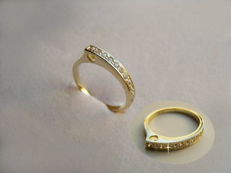 Prsten se zirkony (11kusů), žluté zlato 585/1000. Tento model vyrábíme i v bílém zlatě a s jinou barvou kamenů.