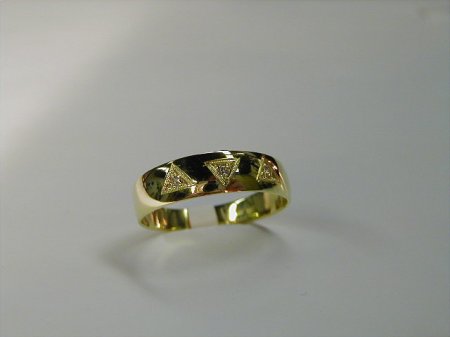 kruh se třemi zirkony "vypíchnutými" do tvaru trojúhelníku toto zasazení kamenů působí zajímavě a netradičně příklad rčení "v jednoduchosti je krása" - jednoduchý a moderní