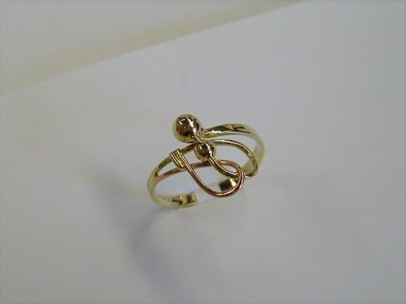 kombinace žluté a červené zlato - celozlatý, jednoduchý prstýnek jehož dominantou jsou dvě kuličky