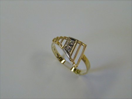 prsten - kombinace žluté a bílé zlato, kámen 2x zirkon tento prsten vyrábíme i v jiných barevných kombinacích zajímavý, netradiční model