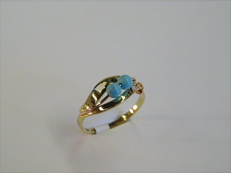 jemný prstýnek, kombinace žluté a červené zlato - 2x tyrkys tyto prsteny vyrábíme v různých modifikacích např. s perlou, korálem, onyxem aj.