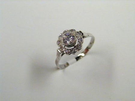 prsten - bílé zlato, kameny 11x zirkon zajímavý model, který při výměně zirkonů za brilianty má šanci se stát rodinným šperkem, který se dědí z generace na generaci