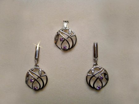 Visací náušnice z bílého zlata, zapínání na puzetu. Povrchová úprava - rhodiování. Kameny - 4x zirkon, 4x ametyst. Tento výrazný model vyrábíme i ve žlutém zlatě a s jinou barevnou kombinací ...