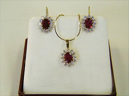 řetízek, náušnice, závěs - kameny 3x rubín ovál, 36x zirkon řetízek hladký čtvercový 42cm, náušnice - zapínání patent oblíbený vzor který se hodí pro denní nošení i slavnostní příležitosti