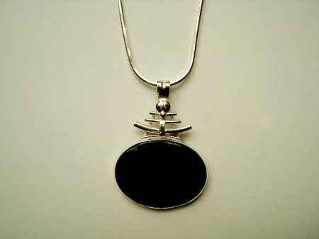 Závěs s onyxem - stříbro 925/1000. Ruční práce - výrazný solitér. Pouze jeden kus! Rozměr cca.5,50x 4,00cm. K závěsu je možné objednat silný, kulatý řetízek 45 (940,-)nebo 50cm(990,-) váha kolem 14,00g na kterém se tento šperk ještě zvýrazní.