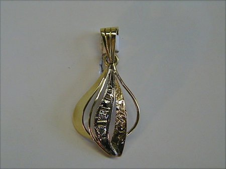 kombinace žluté, červené a bílé zlato ve kterém jsou zasazeny dva zirkony červená část je zdobena gravírováním