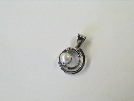 závěs s perlou, bílé zlato, 1x kultivovaná perla povrchová úprava - rhodiování - do soupravy vyrábíme náušnice ( viz. katalog N18) model vyrábíme i ve žlutém provedení
